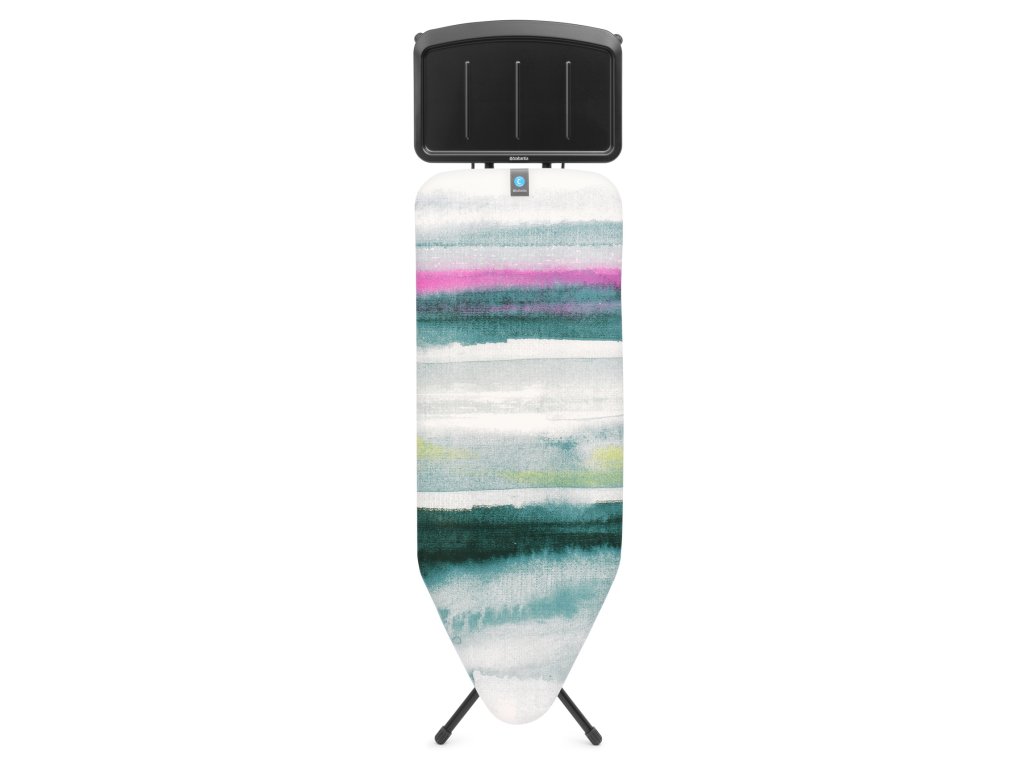 Táto extra veľká parná žehliaca doska Brabantia C s držiakom naparovacej jednotky vám poskytne 124 x 45 cm žehliaceho priestoru a ušetrí vám starosti s premiestňovaním bielizne po doske.