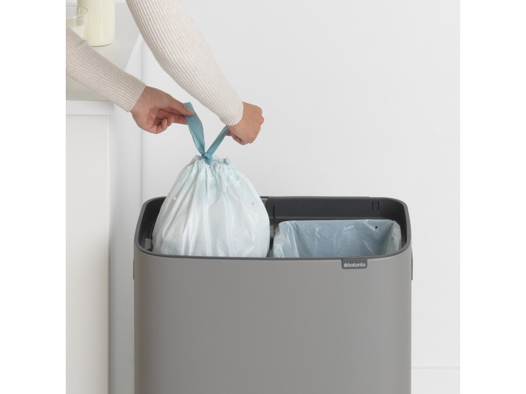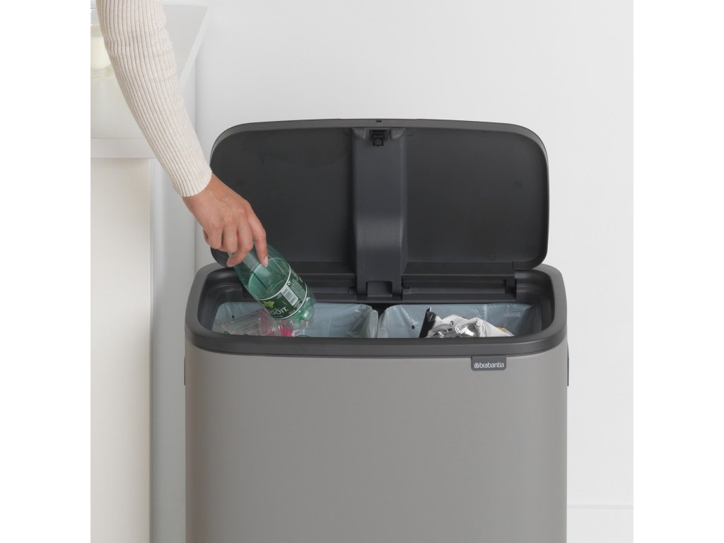 Bo Touch Bin 2x30L má veľkú kapacitu, tesne prilieha k stene alebo do rohu (priestorovo úsporné) a je veľmi stabilný vďaka protišmykovému dnu.