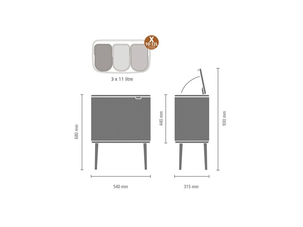 Dodáva sa s tromi odnímateľnými vnútornými vědromi pre 3 druhy odpadu.