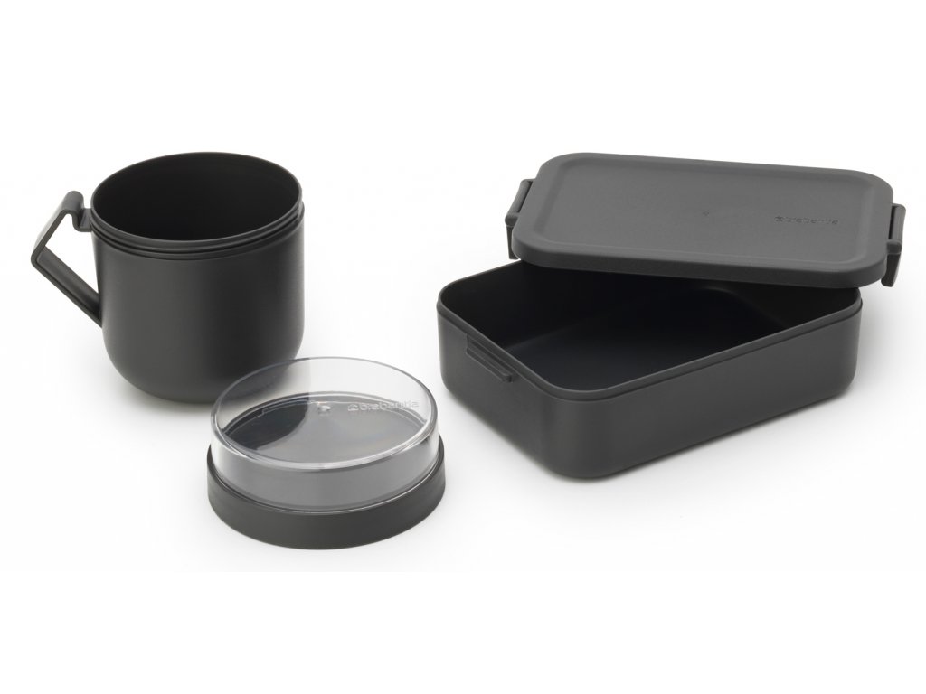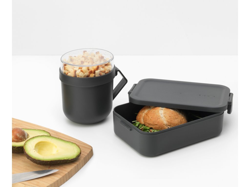 Lacnejšie, zdravšie… Priniesť si obed je múdra vec. A s touto sadou Brabantia Make & Take Lunch Set môžete pripraviť jedlo s dvoma chodmi! Lunch Box Medium má veko s klipmi a priestor pre 4 sendviče. Hrnček na polievku, ktorý netečie, má skrutkovaciu nádobku na polevy, alebo chrumkavé krutóny. Polievka a sendviče... Pripravené, hotové, obed!
