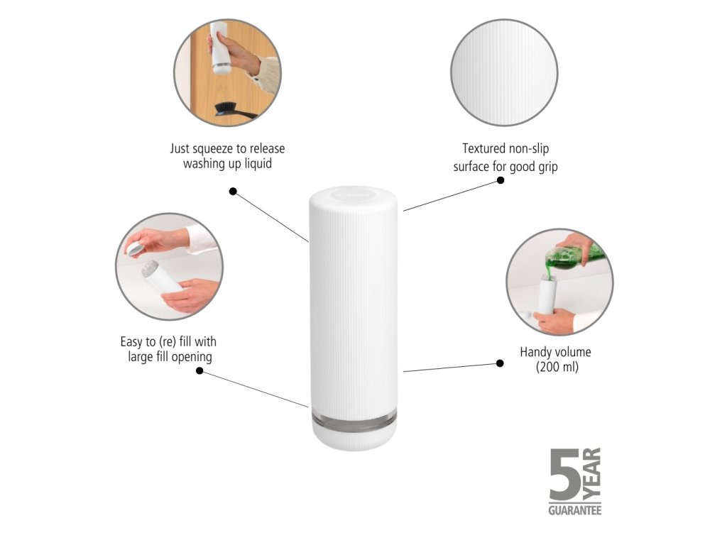 Praktické - stačí stlačiť, aby sa uvoľnil umývací prostriedok.