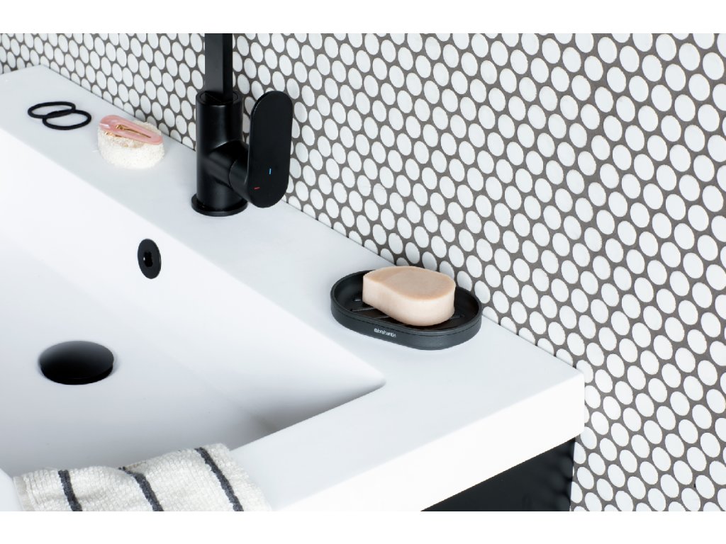 Zjednodušte si život pri umývaní rúk a použite mydlovú misku novej generácie Brabantia MindSet z textúrovaného kovu. Rebrovaná, aby udržala vaše mydlo suché a dostatočne veľká, aby udržala celú mydlovú kocku. Nenechajte sa oklamať jej dizajnovým vzhľadom, jej protišmyková podstava ju udrží pevne na mieste. Navrhnutá tak, aby udržala mydlo suché a umývadlo čisté.