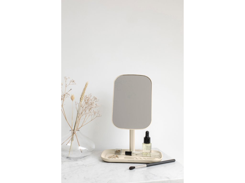 Aká krása, toto plne nastaviteľné zrkadlo s odkladacou priehradkou udržuje pohromade make-up alebo šperky.
