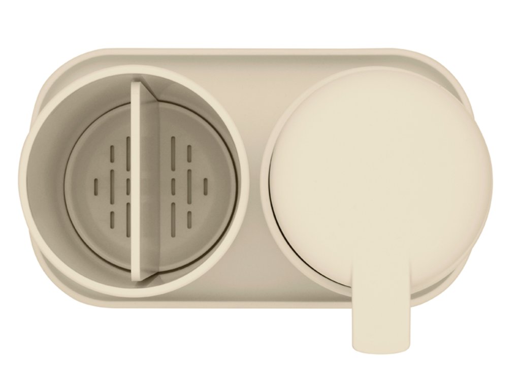 Ľahko čistiteľný držiak zubnej kefky - s odnímateľnou vložkou pre tradičné a elektrické zubné kefky.
