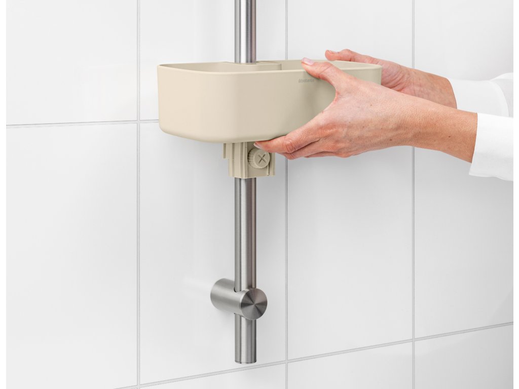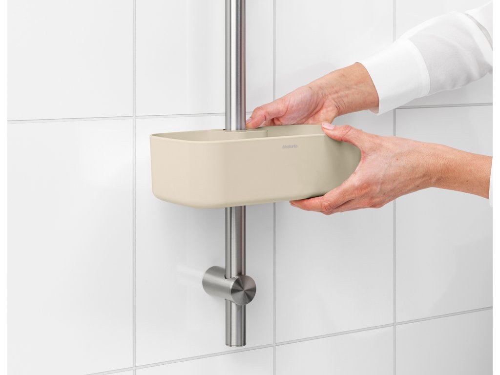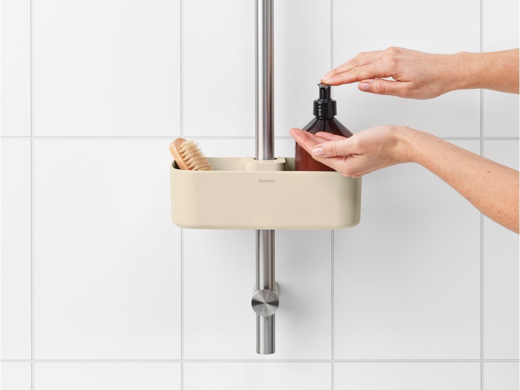Ľahko ho pripevnite k sprchovej tyči a nastavte výšku. Šikovný trik, ako udržiavať v kúpeľni poriadok.