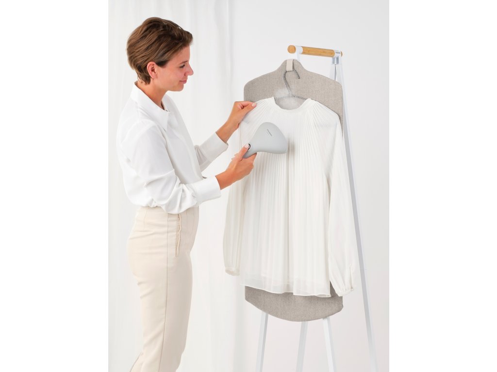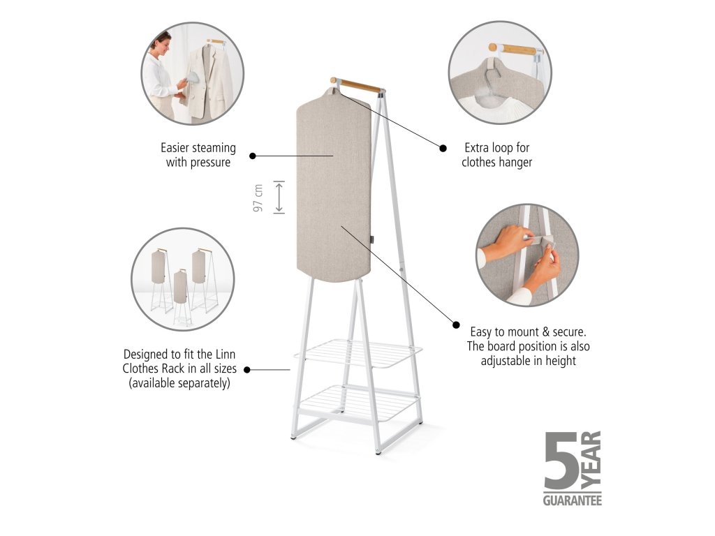 Naparovanie oblečenia zbaví nepríjemných záhybov a zaberie menej času a úsilia ako žehlenie. A s Brabantia Linn Steam Board je naparovanie ešte rýchlejšie a jednoduchšie. Táto inteligentná doska Steam Board vám pomôže vyvinúť tlak na záhyby a dosiahnuť tak lepšie výsledky. Je navrhnuté tak, aby sa zmestilo na všetky vešiaky na bielizeň Linn a povyšuje štýlový Linn na multifunkčný kus nábytku na sušenie, vetranie a naparovanie vášho oblečenia. Stačí dosku pripevniť pomocou pásikov na suchý zips, upraviť ju na ideálnu pracovnú výšku!