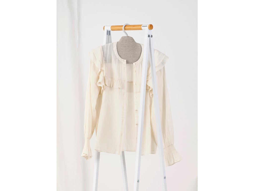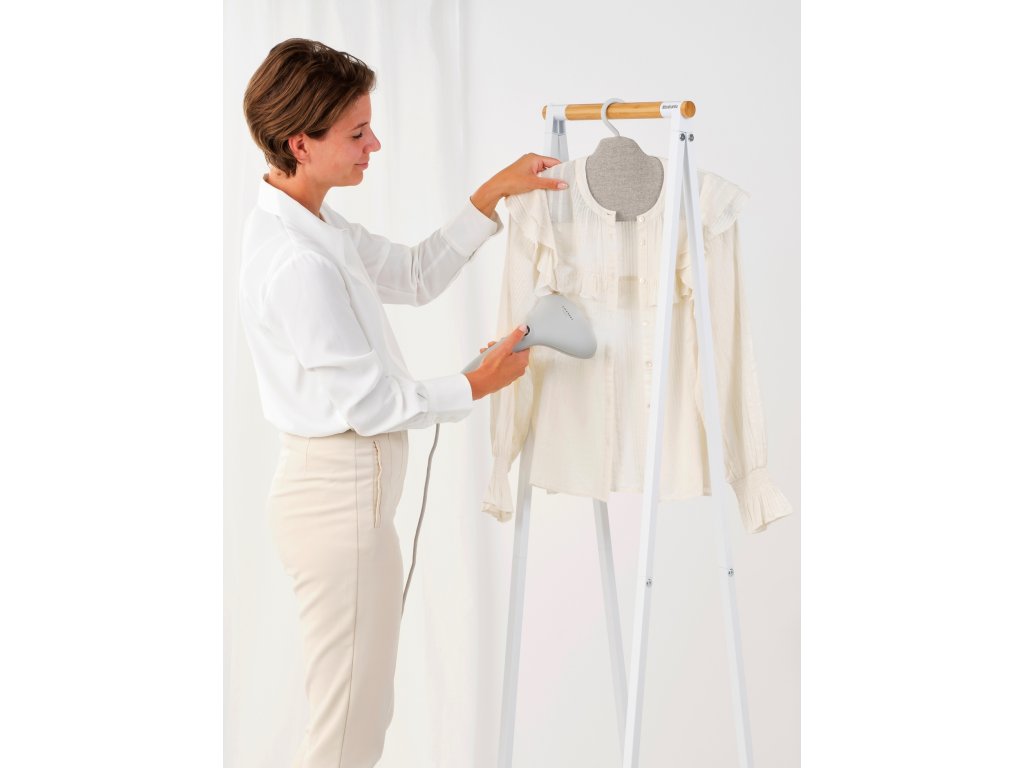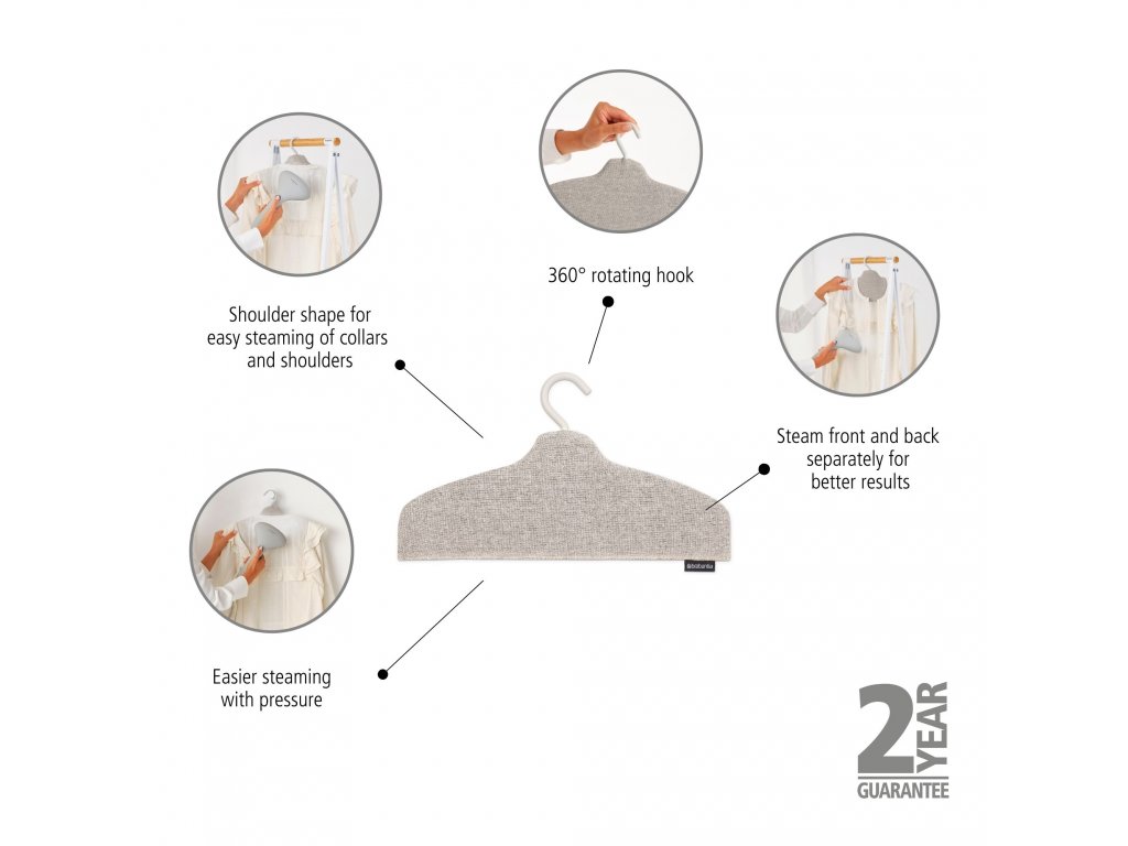 Dávate prednosť naparovaniu oblečenia namiesto žehlenia? Použite naparovacie ramienko Brabantia. Vyrobené na použitie s ručnými naparovačmi, uľahčuje a urýchľuje naparovanie. Zvlášť tie ťažké časti, ako je golier a ramená! Horúci predmet na ľahké varenie v pare.