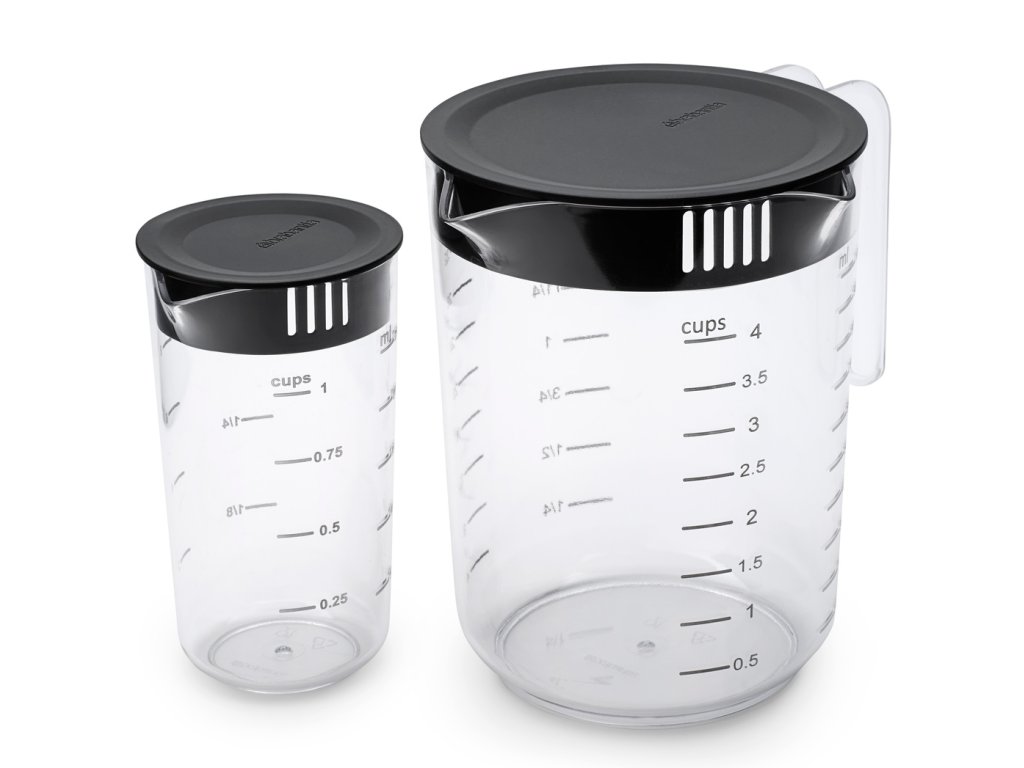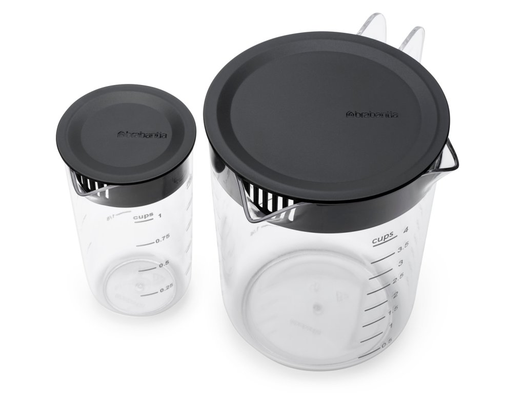 S touto sadou dvoch šikovných odmeriek Brabantia Tasty+ je v kuchyni všetko prehľadné. Ako 1L verzia, tak 250ml džbán majú jasné, ľahko čitateľné miery v šálkach. S výlevkou a štrbinovým vekom na nalievanie a filtrovanie súčasne. Vyrobené z vysoko kvalitných materiálov bezpečných pre potraviny a taktiež priestorovo úsporné!