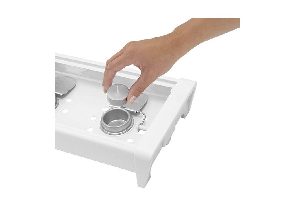Ak chcete svoj nápoj či pokrm udržať teplý, použite náš ohrievač jedla na dve sviečky.