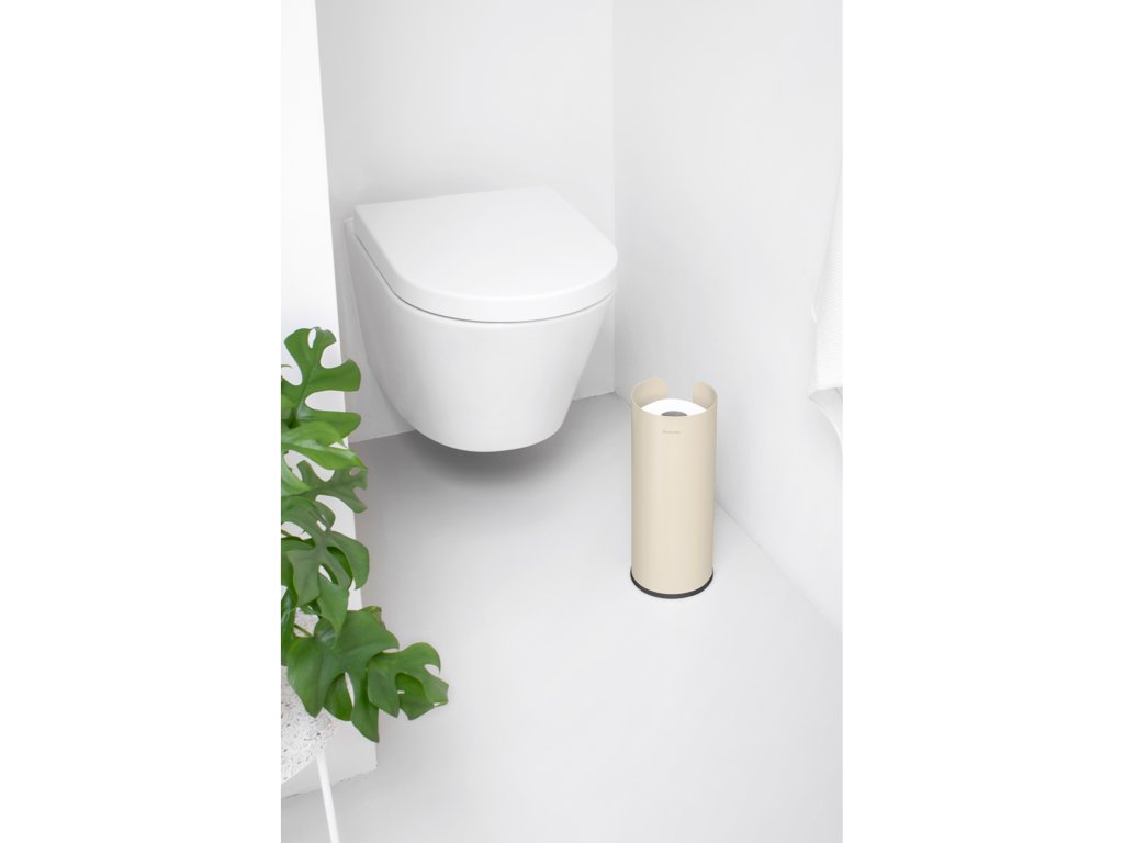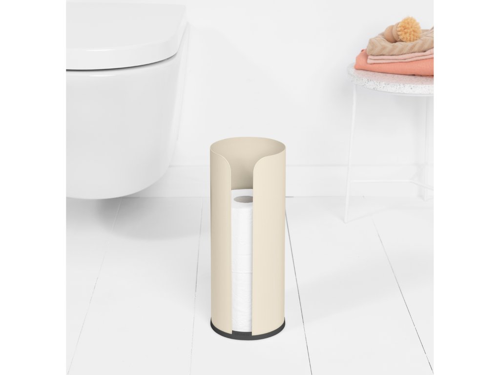 Voľne stojaci zásobník na toaletný papier. Navrhnutý na uloženie 3 rezervných toaletných rolí. Uzavreté telo chráni valčeky pred prachom a striekaním - veľmi hygienické a veľmi diskrétne.