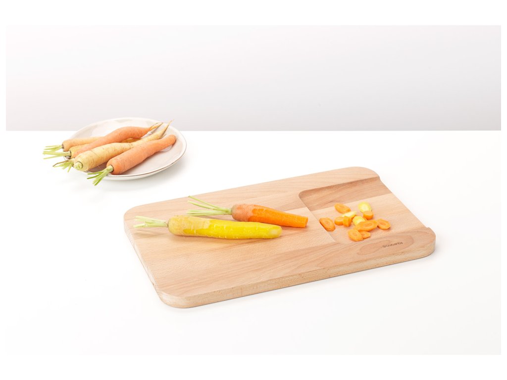 Doštička na zeleninu má dve úrovne, ktoré uľahčujú nalievanie nakrájanej zeleniny na panvicu.