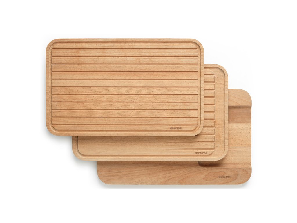Táto sada 3 udržateľných drevených doštička je všetko, čo potrebujete vo svojej kuchyni, pokiaľ ide o krájanie. Jedna doska na zeleninu, druhá na chlieb a tretia na mäso. Opačná strana všetkých doštička môže byť použitá pre servírovanie jedla.