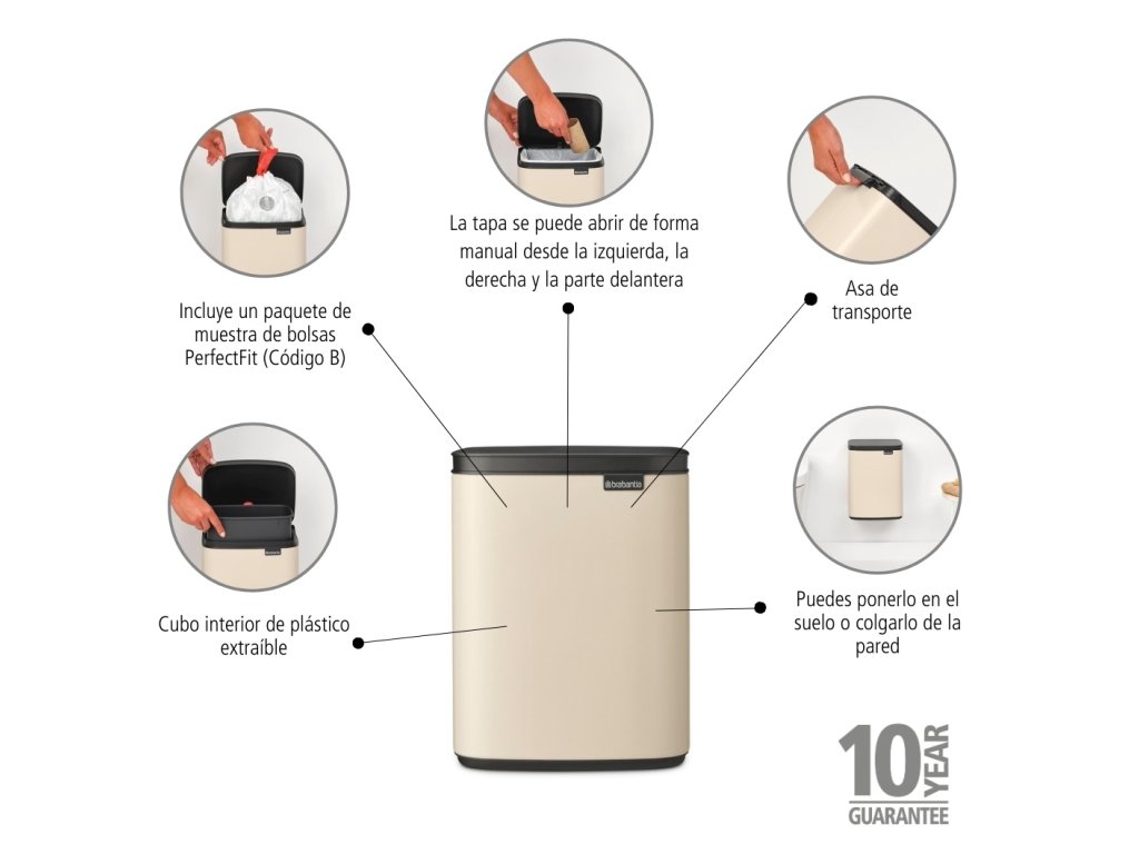 Ani príliš veľký, ani príliš malý, ale tak akurát. To je pre vás odpadkový kôš Brabantia Bo 7 l! Postavte ho do rohu alebo ho zaveste na stenu. Kdekoľvek sa vám bude páčiť, pretože veko môžete ľahko zdvihnúť zľava, sprava aj spredu koša. Už sa teda nemusíte ohýbať, aby ste do koša niečo vložili. Rozprávkový kôš!
