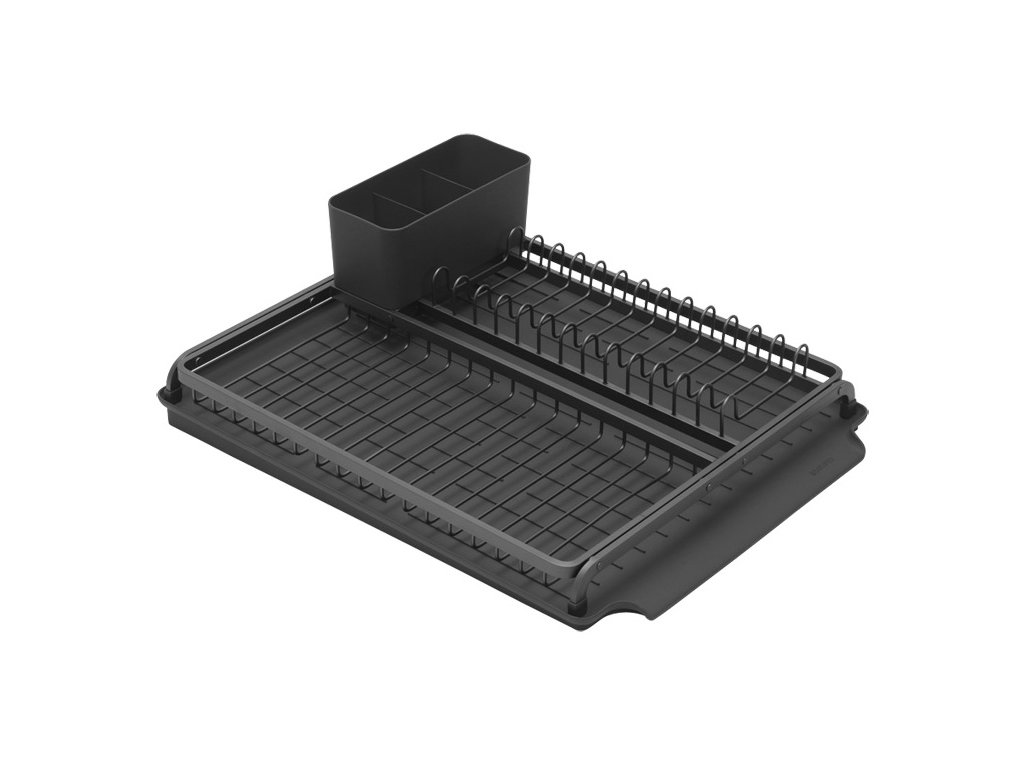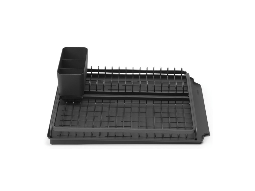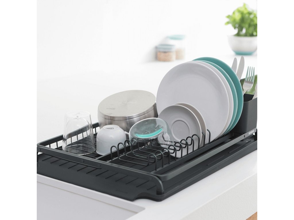Tento odkvapkávač riadu Brabantia má elegantný dizajn a priestor až pre 13 tanierov plus misky, príbory a poháre. Má odnímateľný košík na príbory a tiež šikmú odkvapkávaciu misku, takže kvapky stekajú priamo do drezu.