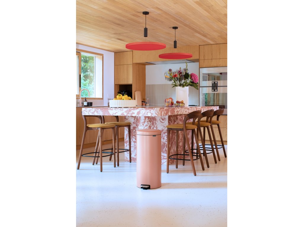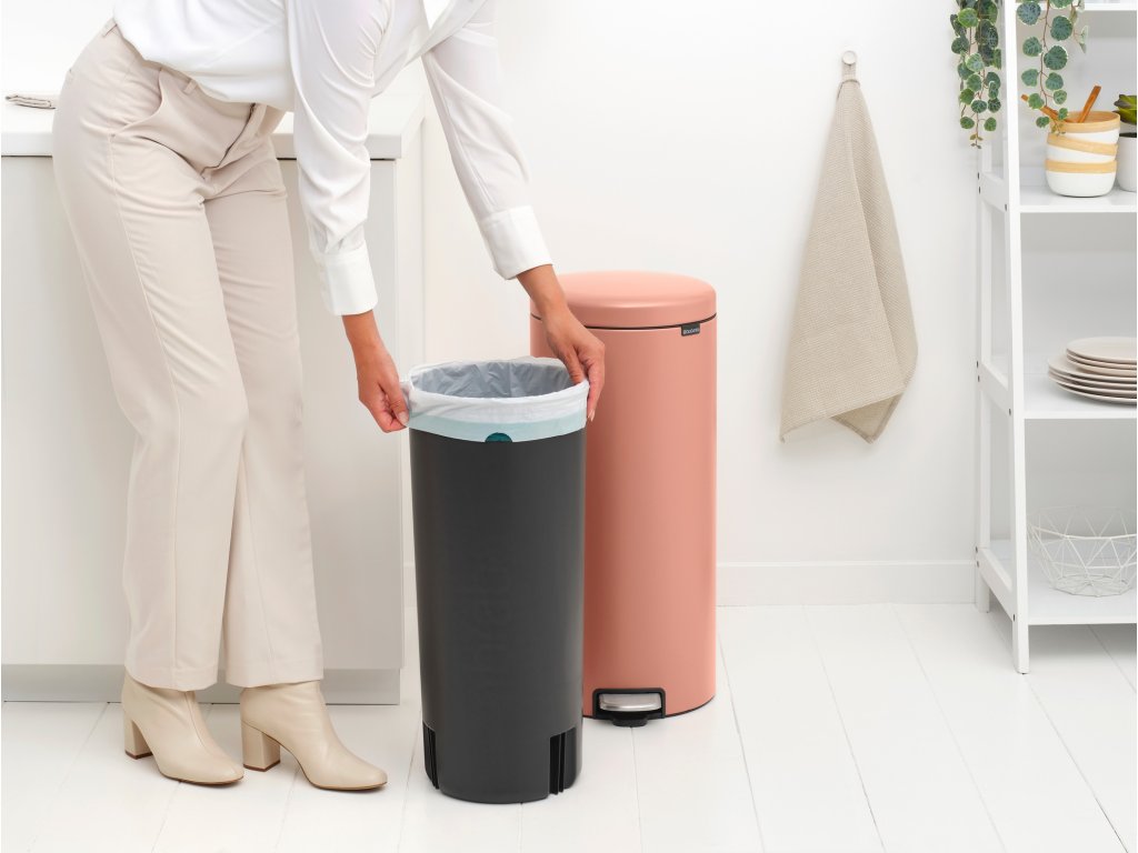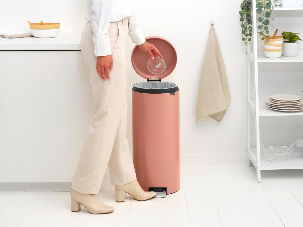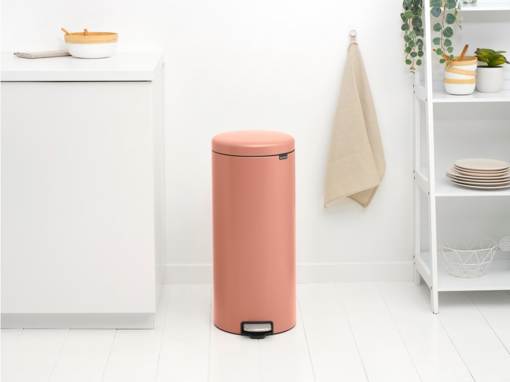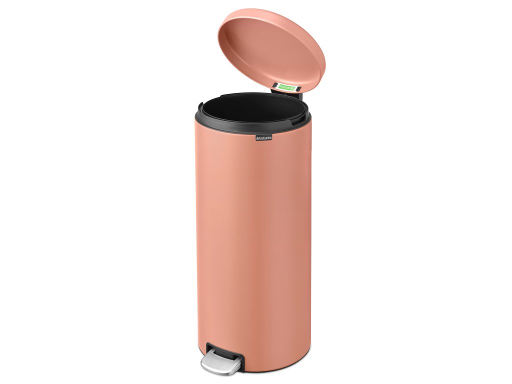 30-litrový pedálový kôš NewIcon Brabantia je ešte ikonickejší s týmto teplým kovovým lakom a štýlovým pedálom z nerezovej ocele. Dodáva každej miestnosti nádych luxusu. Je stabilný a bezpečný vďaka protišmykovej základni a ochrane proti prevráteniu. Vďaka jedinečnej funkcii soft-close sa zatvára veľmi jemne. A samozrejme tento NewIcon je odolný voči zápachu, hygienický, ľahko sa otvára a ľahko sa udržuje v čistote.