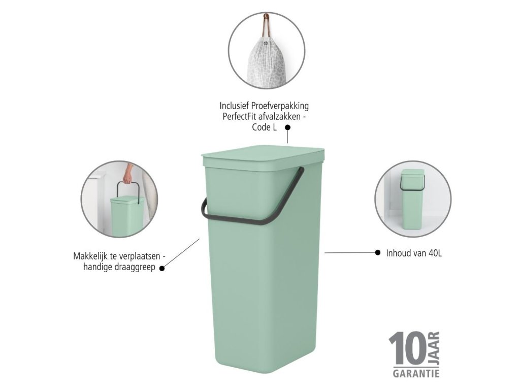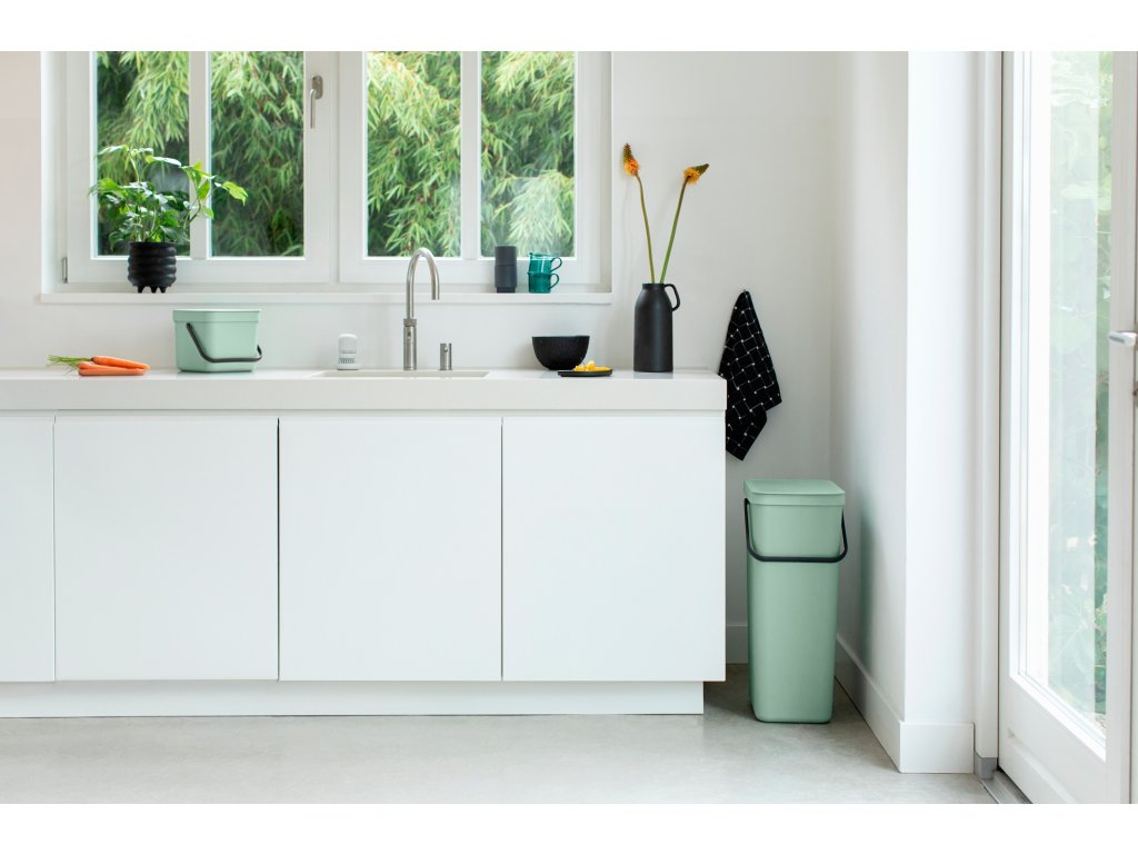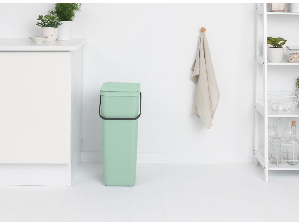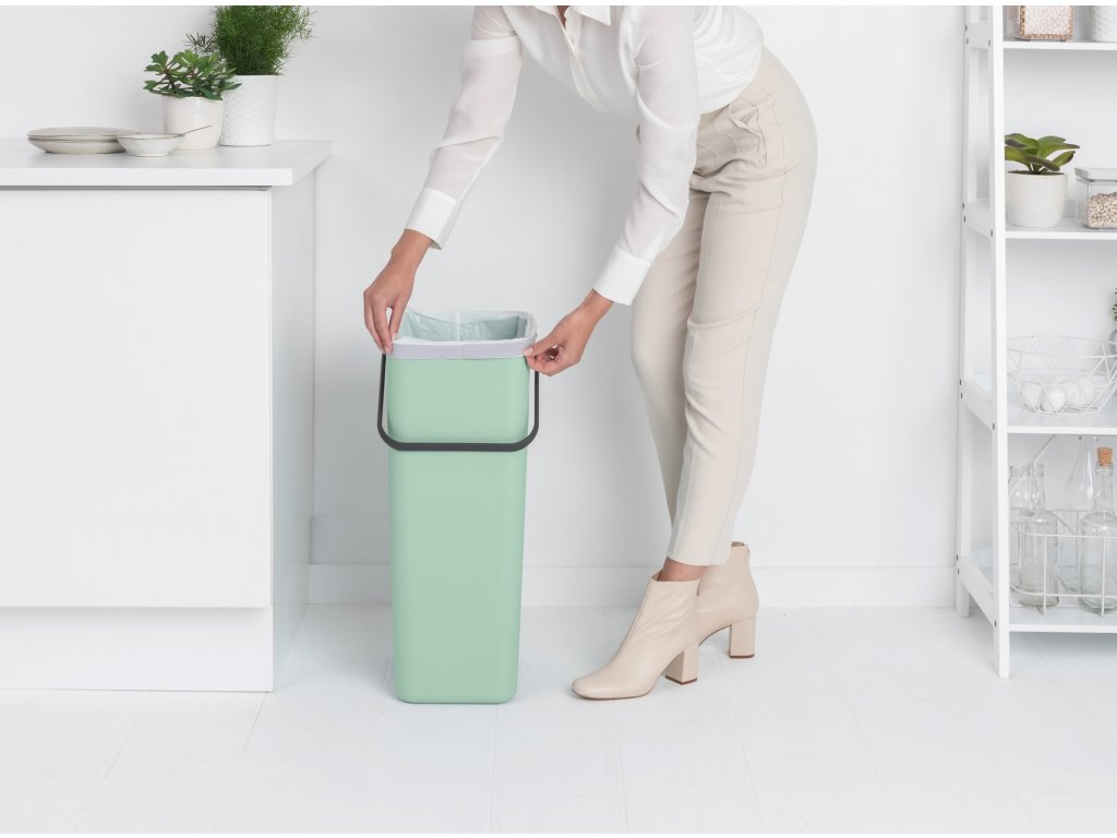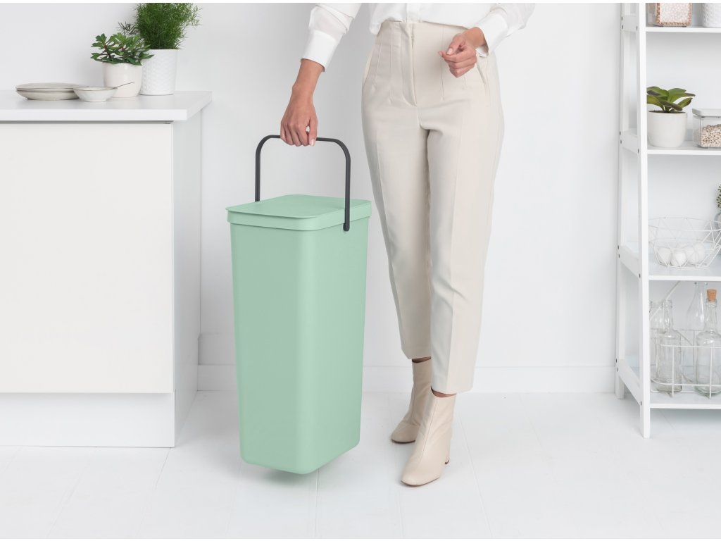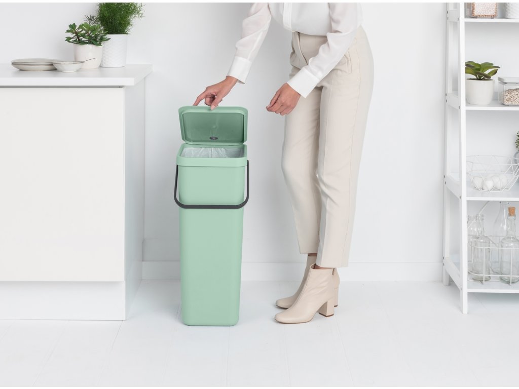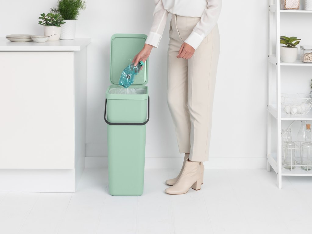 Prázdne obaly, fľaše, plechovky – a všetko, čo chcete roztriediť – do tohto praktického 40-litrového koša Brabantia Sort & Go.