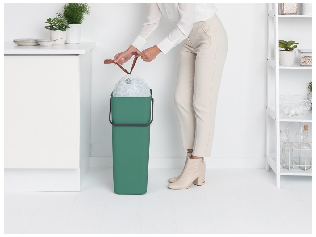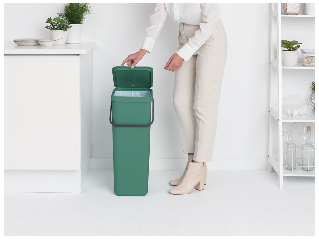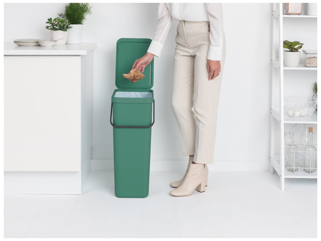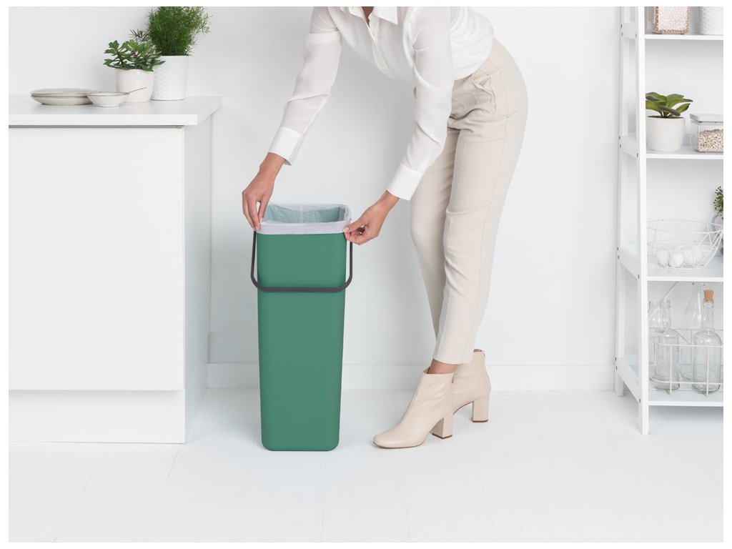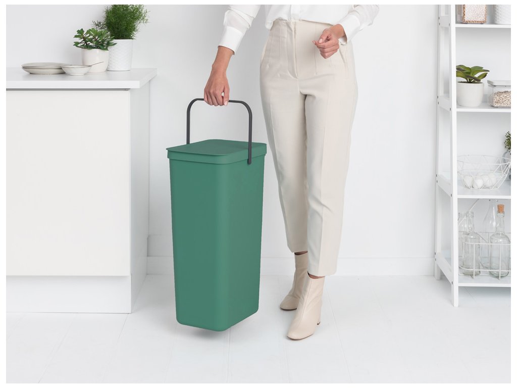 Prázdne obaly, fľaše, plechovky - a všetko, čo chcete roztriediť - do tohto praktického 40litrového koša Brabantia Sort & Go.