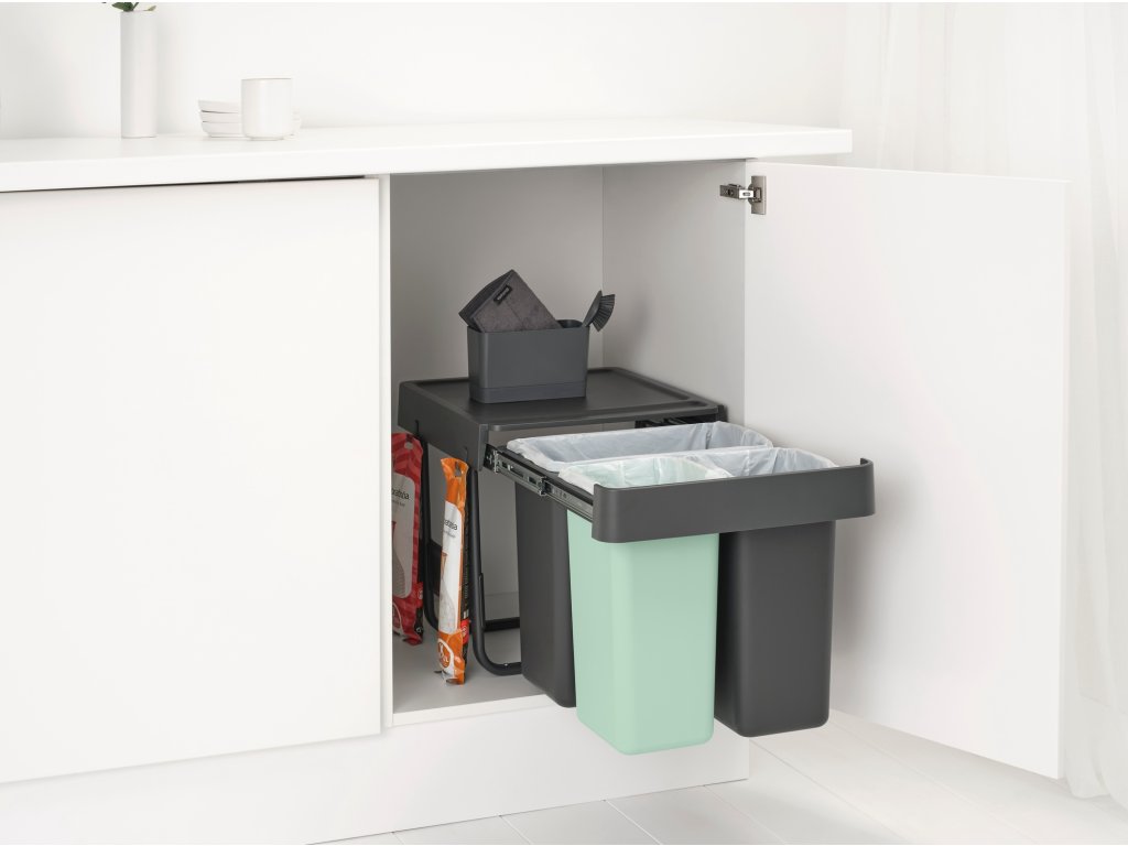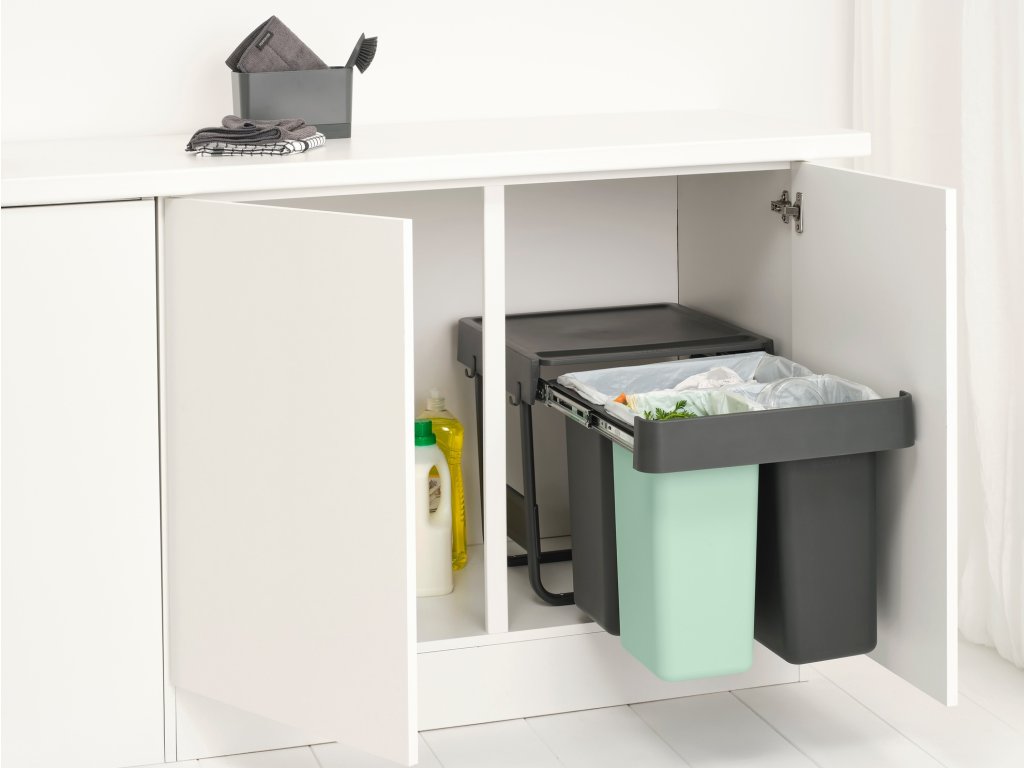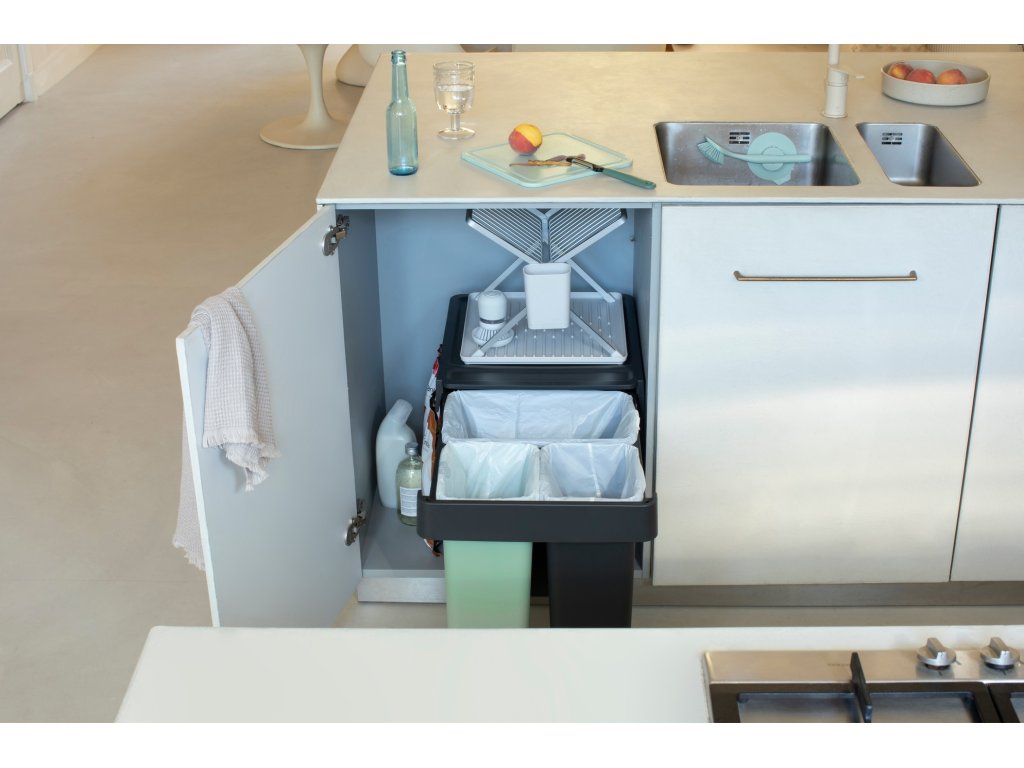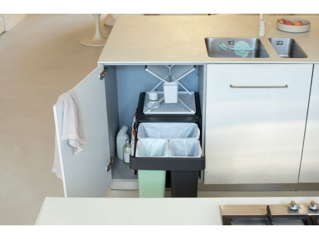 Strojnásobte svoj výkon pri triedení odpadu bez toho, aby ste stratili podlahovú plochu, so vstavaným košom Brabantia Sort & Go 10+10+20 litrov. Vyrobené tak, aby sa dalo schovať do skrine, s jednoduchou inštaláciou montážneho rámu (samonosný, takže žiadne prehýbajúce sa dvierka!). Tieto diskrétne priehradky sa zmestia do väčšiny kuchynských skriniek, či už sa dvierka otvárajú doľava alebo doprava. Majú dokonca úložný priestor hore a háčiky na strane pre extra organizáciu. S dlhou teleskopickou lištou, takže ich môžete celé vytiahnuť jednou rukou. A samozrejme sa dajú ľahko čistiť, vyberať a vyprázdňovať. Skvelá sada.