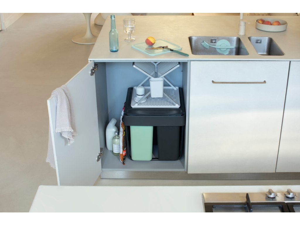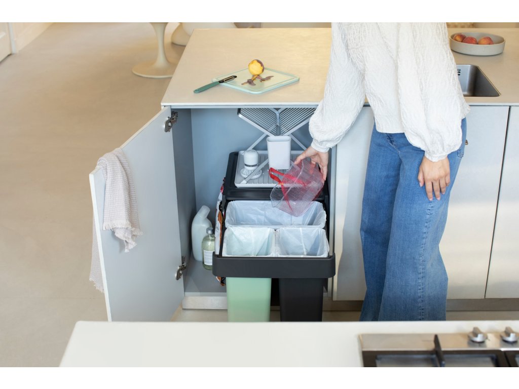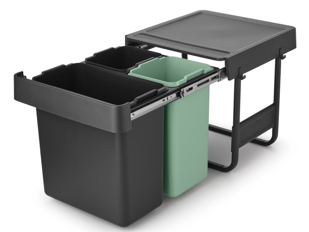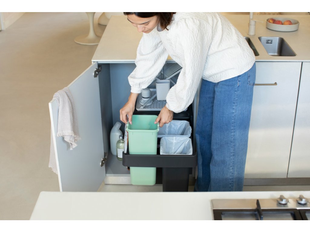 Strojnásobte svoj výkon pri triedení odpadu bez toho, aby ste stratili podlahovú plochu, so vstavaným košom Brabantia Sort & Go 10+10+20 litrov. Vyrobené tak, aby sa dalo schovať do skrine, s jednoduchou inštaláciou montážneho rámu (samonosný, takže žiadne prehýbajúce sa dvierka!). Tieto diskrétne priehradky sa zmestia do väčšiny kuchynských skriniek, či už sa dvierka otvárajú doľava alebo doprava. Majú dokonca úložný priestor hore a háčiky na strane pre extra organizáciu. S dlhou teleskopickou lištou, takže ich môžete celé vytiahnuť jednou rukou. A samozrejme sa dajú ľahko čistiť, vyberať a vyprázdňovať. Skvelá sada.