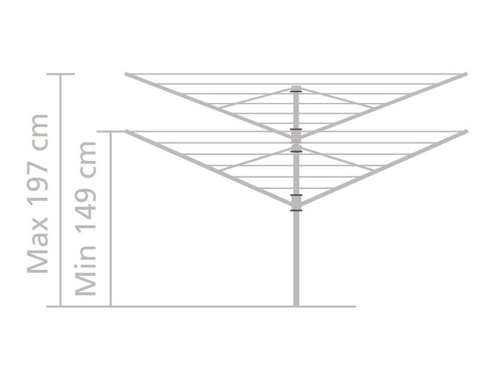 Odolný štvorramenný záhradné sušiak na bielizeň s veľmi jednoduchým ovládaním "EasyLift". Pokiaľ chcete vyvetrať periny alebo sušiť ťažké kusy bielizne, jednoducho si nastavíte výšku sušiaku od 149 do 197 cm a šnúry zostanú stále napnuté. Na sušiak zavesíte až 6 práčok bielizne.
