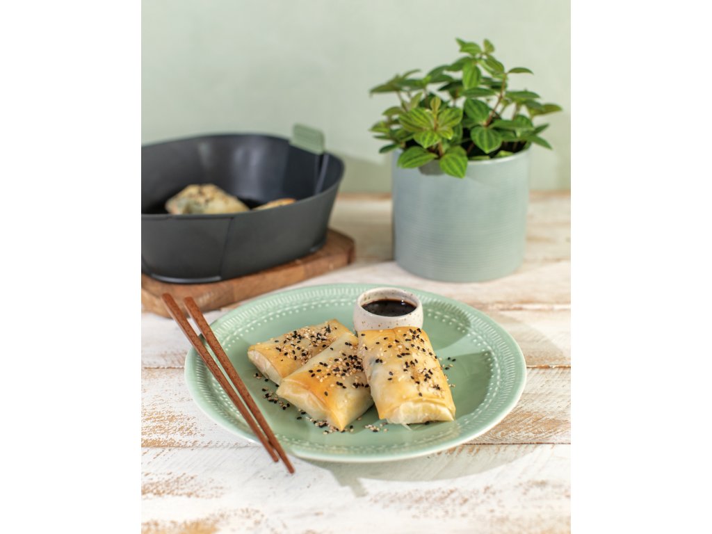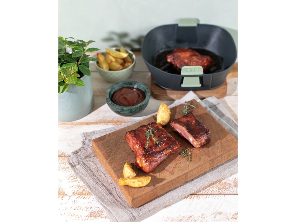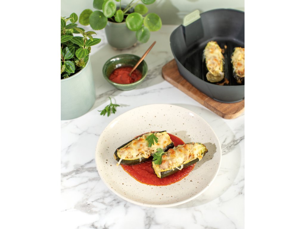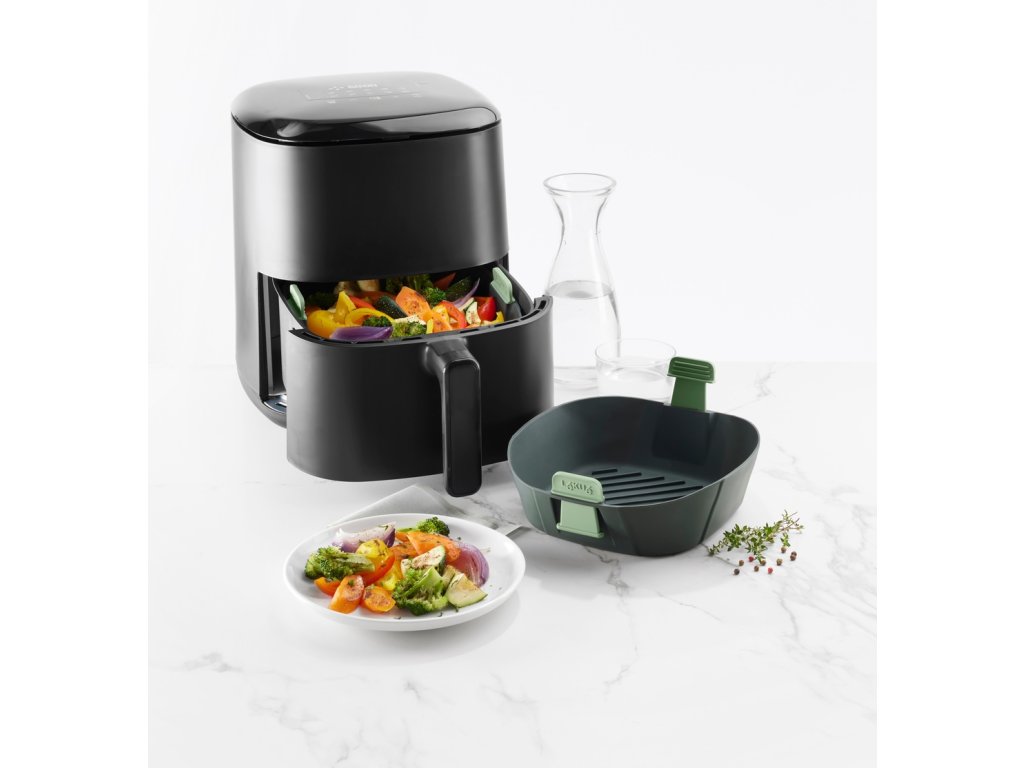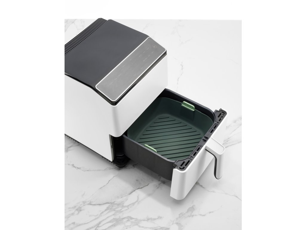 Vyrobené zo 100% silikónu. Bez BPA. Ideálne pre teplovzdušné fritézy s objemom od 5 l do 3,5 l. Nastaviteľné od 221 x 221 x 85 mm do 180 x 180 x 85 mm. Vždy používajte ochranné rukavice alebo handričku, aby ste úplne zabránili riziku popálenia.