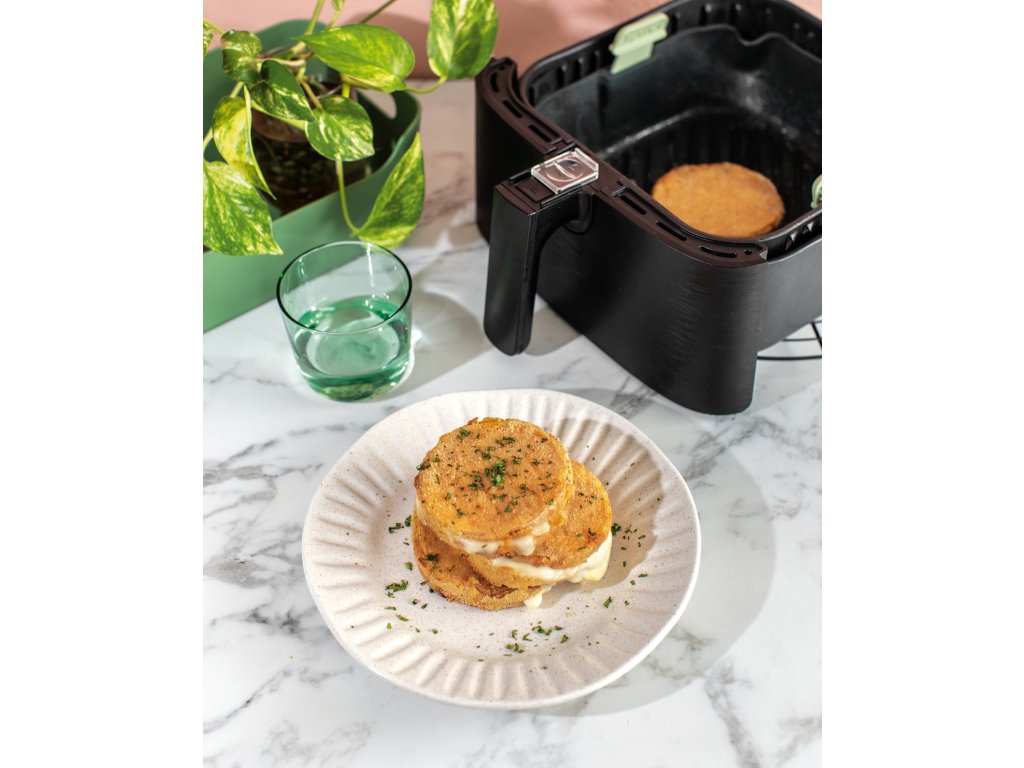 Výsuvné nepriľnavé rukoväte poskytujú pohodlnejší a bezpečnejší úchop. Dvojitá poloha: zdvihnite rukoväte pre väčší priestor medzi rukou a fritézou a spustite ich pre plné využitie všetkého priestoru vo vnútri spotrebiča.
