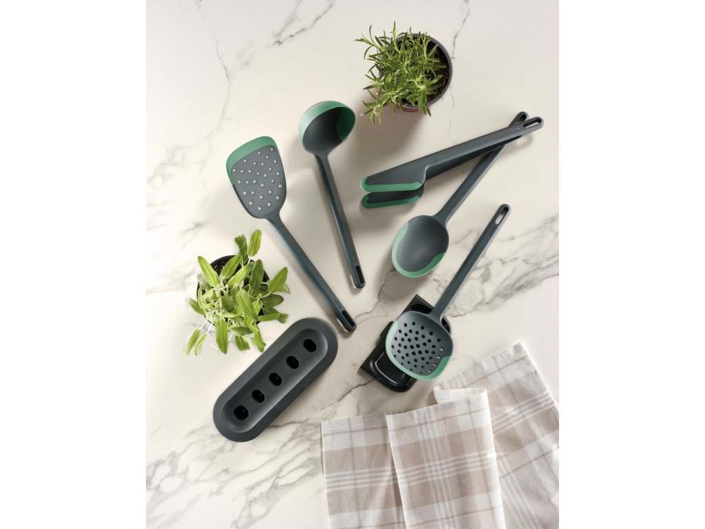 Sada obsahuje 5 základných kuchynských náčiní na prípravu akéhokoľvek typu receptu a zároveň sa vyhnete poškriabaniu. Perfektná voľba, či už máte skúsenosti s varením, alebo sa s ním ešte len zoznamujete. Miešajte, podávajte, obráťte a sceďte a zároveň sa starajte o svoj kuchynský riad!
